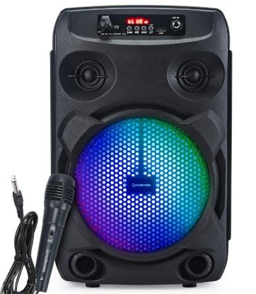 A wired microphone is included, making it perfect for karaoke, announcements, and small events. The portable design makes it easy to carry and use at home, outdoor parties, shops, or gatherings.